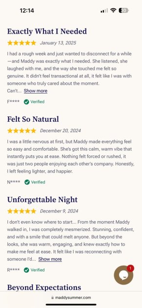 If we haven’t crossed paths yet, allow me to introduce myself, I’m MaddyWith a glance that’s both daring and inviting, my gaze is bound to leave you intrigued, while my smile has been known to spark a thousand fantasies. My curves, soft and inviting, will have you wishing to run your hands along every inch of my figure.Whether you seek an attentive dinner date, your desires guide our time together—whether you crave adventure, relaxation, or a blend of both. I’m here to exceed your every expectation. Hookup with confidence without the fear of getting scammed. I'm 100% real and I try my utmost best to deliver top-notch services to all my clients.ONE THING ABOUT ME IS THAT I ALWAYS SHOW UP. NO DISAPPOINTMENTS!!!!!